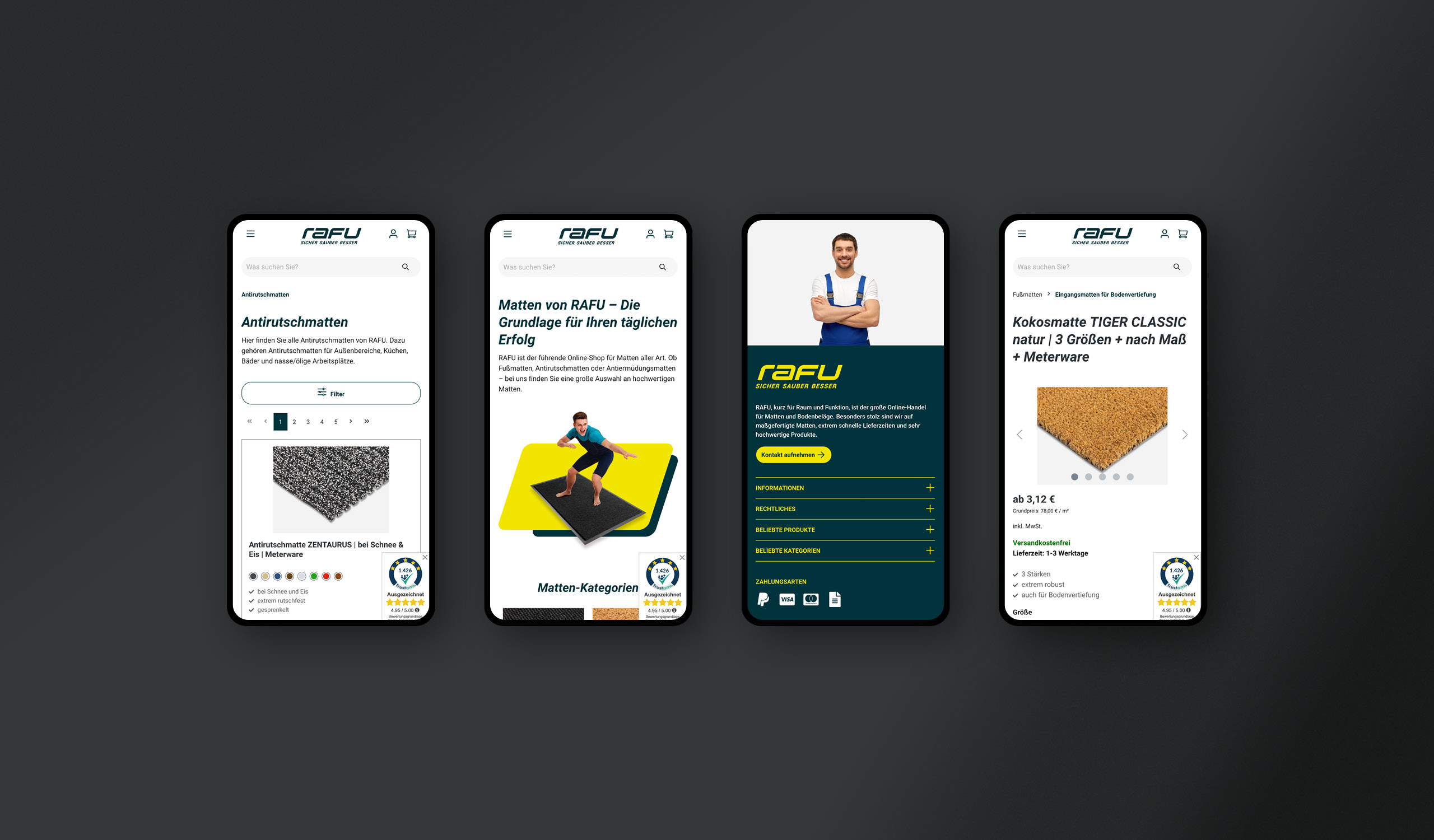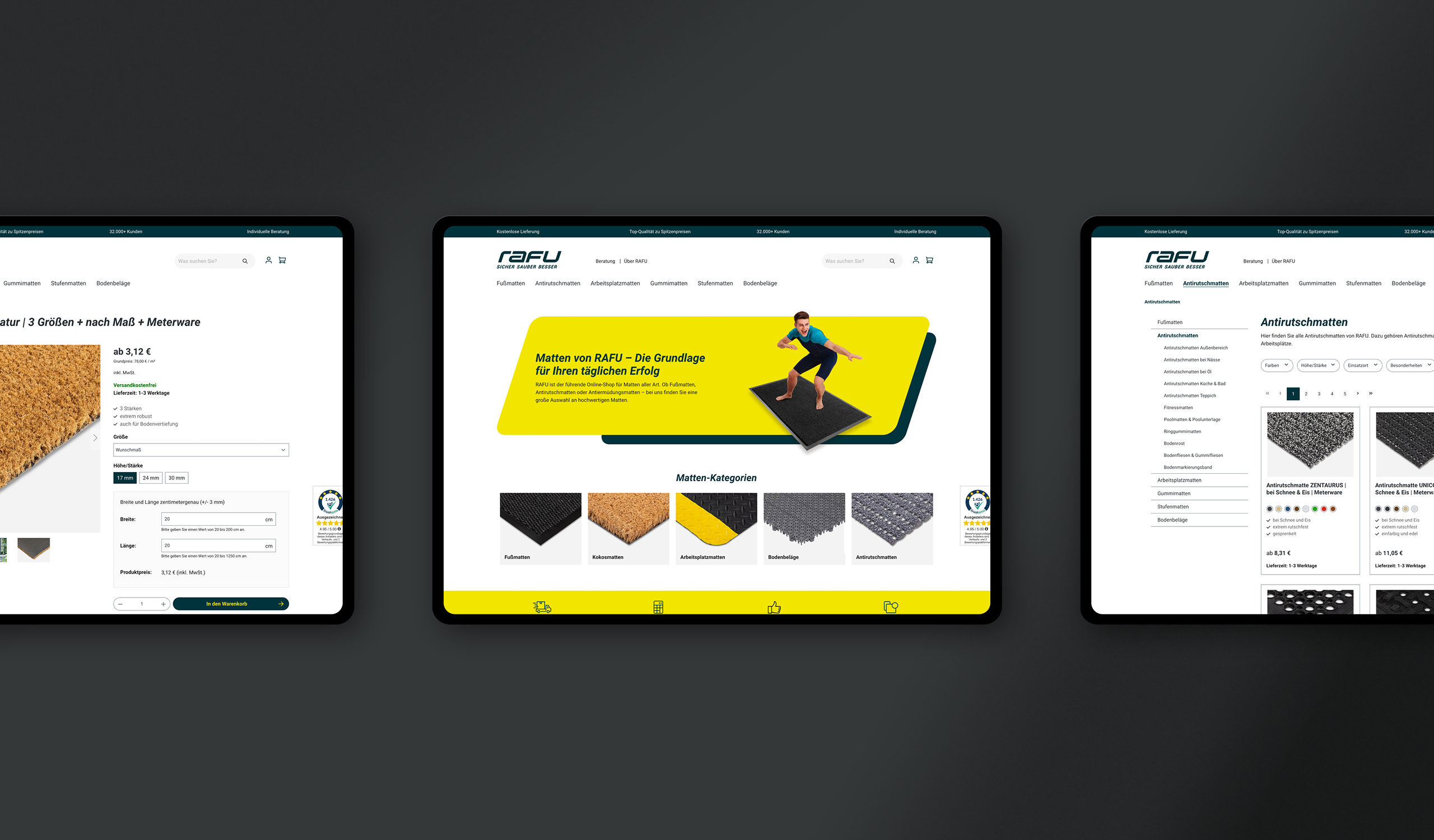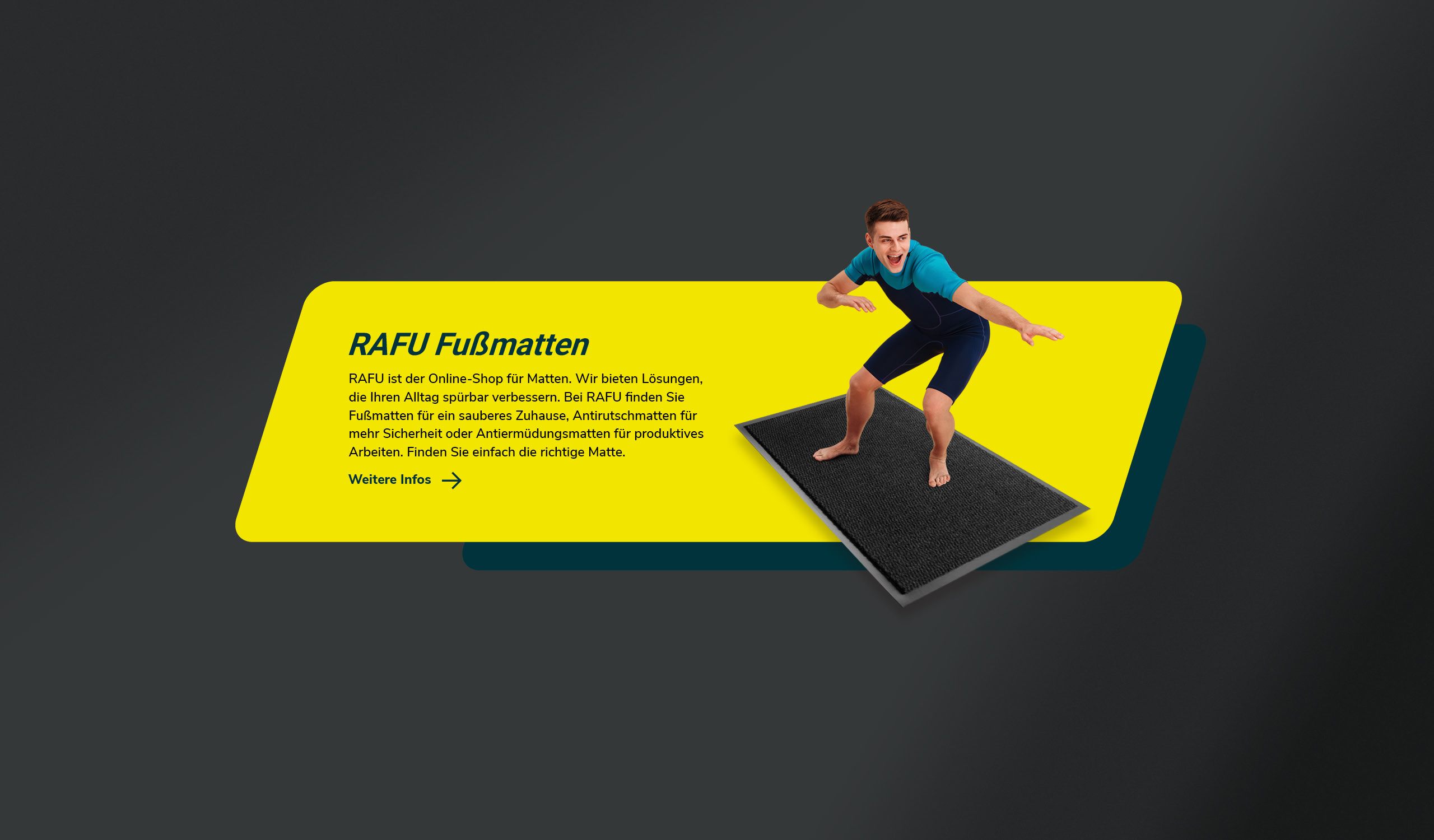 RAFU gehört zu den führenden Spezialisten für Matten jeglicher Art. Im Onlineshop werden Fußmatten, Antirutschmatten, Antiermüdungsmatten und demnächst weitere Produkte angeboten.